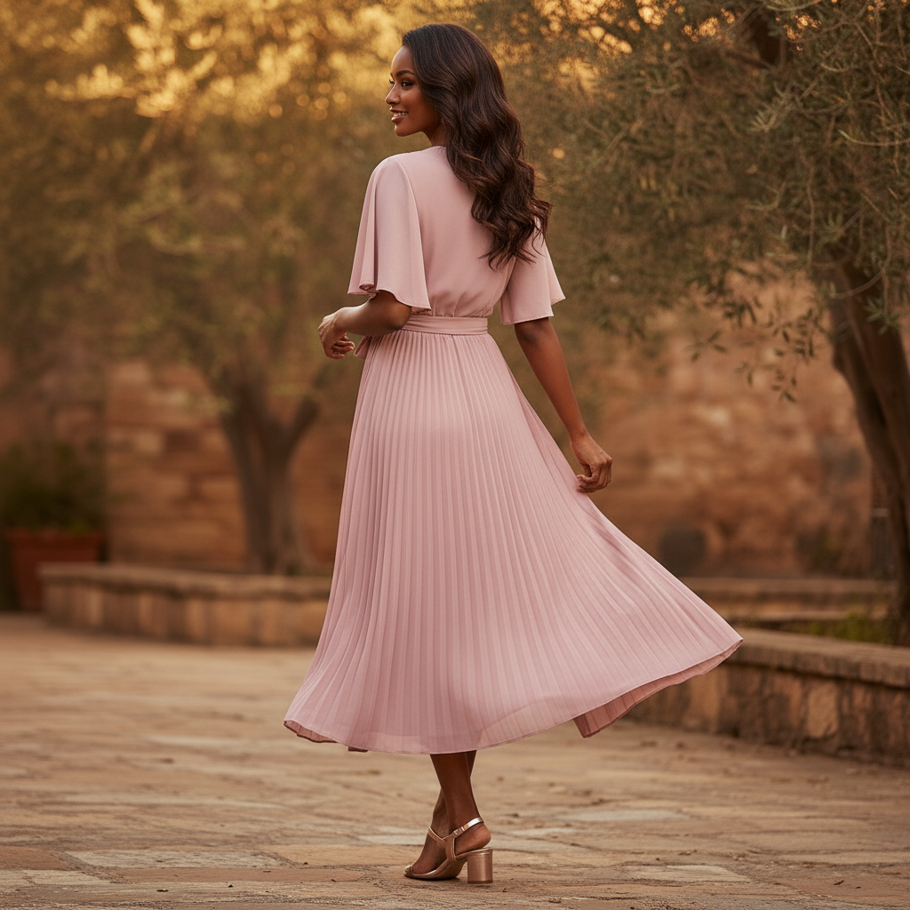 Material: Unsere Chiffonkleider bestehen aus hochwertigem Chiffon - einem hauchzarten, fliessenden Stoff mit leichter Transparenz und elegantem Fall. Chiffon schmeichelt jeder Figur und sorgt fuer einen schwerelosen, romantischen Look.